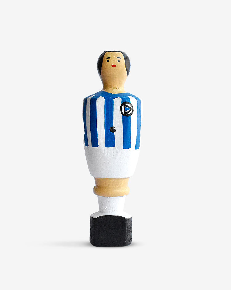 Un viaje en el tiempo. Una figura de futbolín que une a todos los aficionados al fútbol. Nostalgia 100% made in Spain. Revanchas eternas, goles inolvidables, tardes de domingo con amigos y recuerdos de nuestra infancia. Pintado a mano en madera de Haya y hecho en España. ¡Qué mejor regalo!