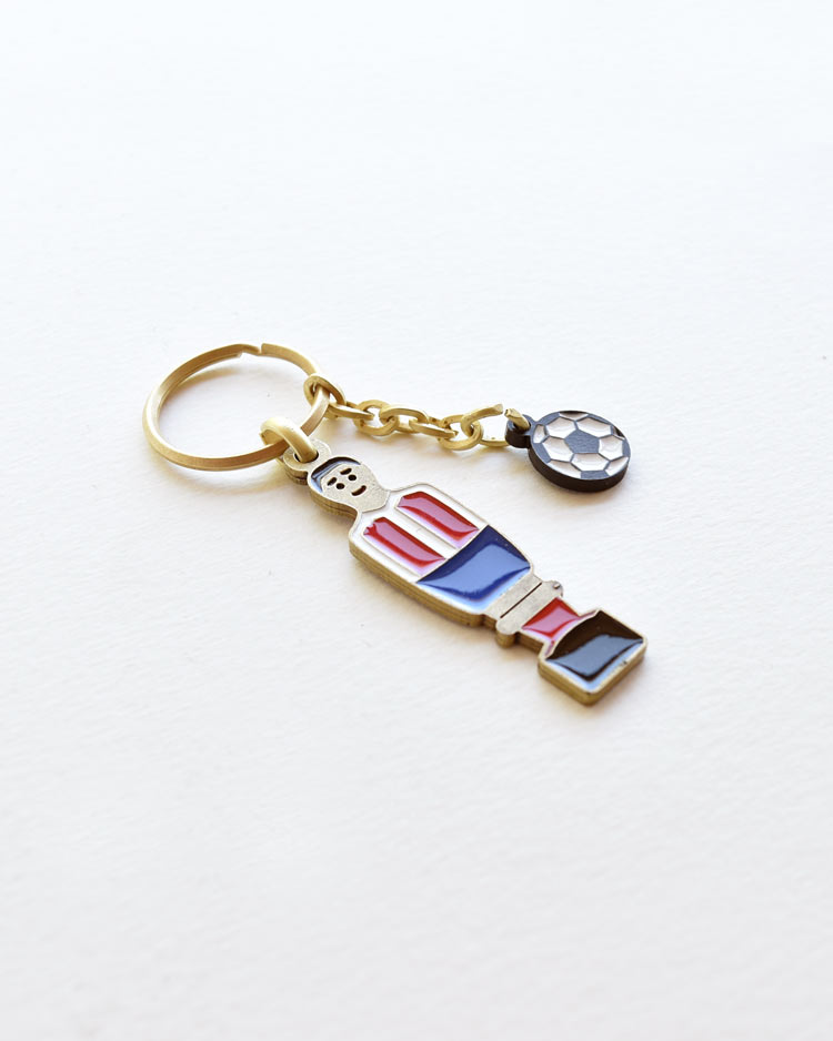 El llavero más original de tu equipo, con la forma de los auténticos jugadores de futbolín. No puede faltar en tu bolsillo fabricado en esmalte en varios colores. Tanto el packaging de los llaveros como las cajas que los contienen (agropaper 100% biodegradable) se hacen en España con certificaciones de sostenibilidad.