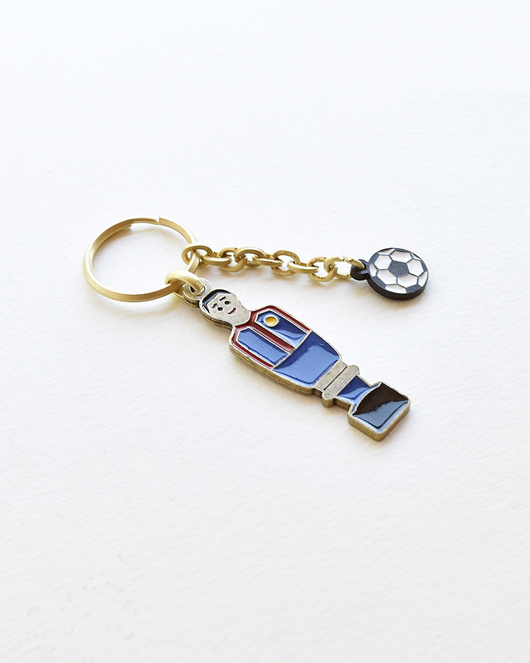 El llavero más original de tu equipo, con la forma de los auténticos jugadores de futbolín. No puede faltar en tu bolsillo fabricado en esmalte en varios colores. Tanto el packaging de los llaveros como las cajas que los contienen (agropaper 100% biodegradable) se hacen en España con certificaciones de sostenibilidad.