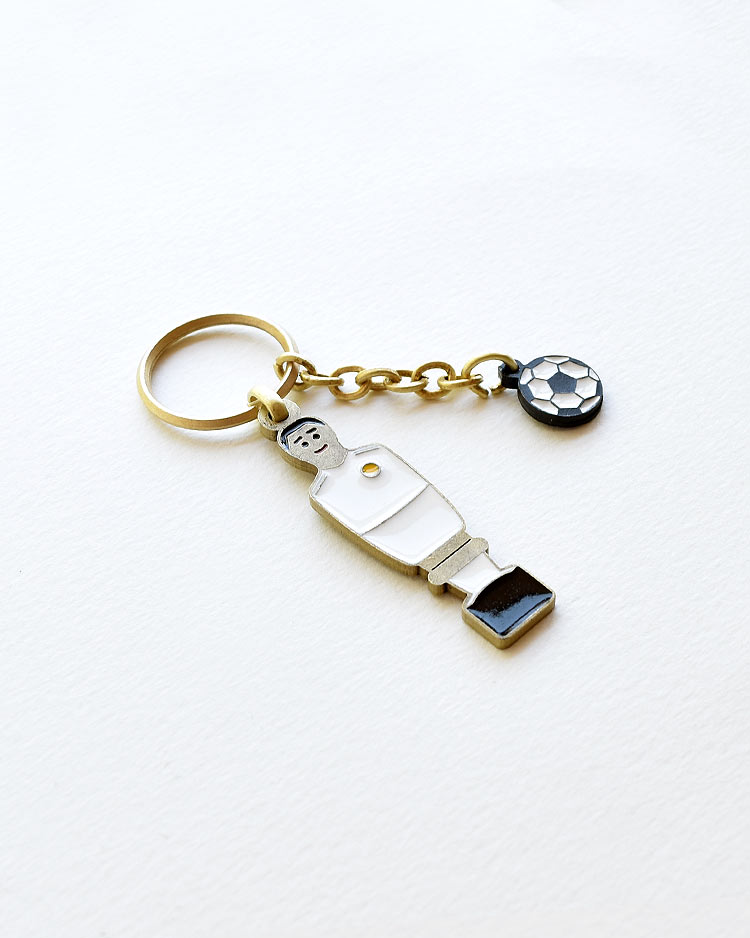 El llavero más original de tu equipo, con la forma de los auténticos jugadores de futbolín. No puede faltar en tu bolsillo fabricado en esmalte en varios colores. Tanto el packaging de los llaveros como las cajas que los contienen (agropaper 100% biodegradable) se hacen en España con certificaciones de sostenibilidad.